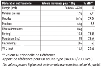 Ces valeurs peuvent légerement varier en raison du caractère naturel du produit